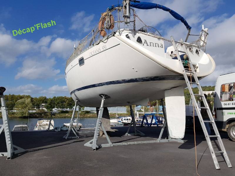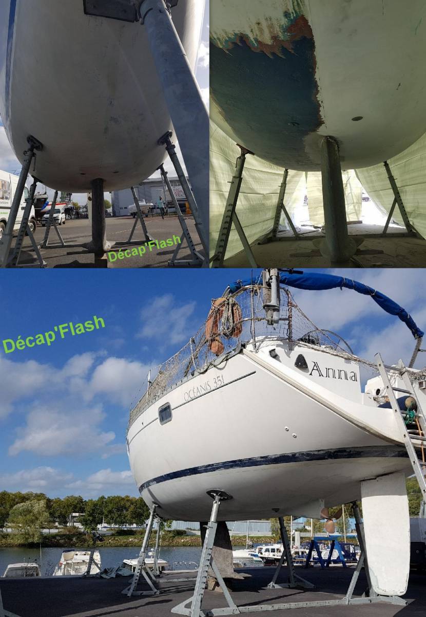 Le décapage par aérogommage ou hydrogommage est devenu la solution la plus rapide, la plus écologique dans le domaine du décapage des antifouling sur les carènes. C’est un travail qui demande beaucoup de soin dans application car le gommage ne doit pas endommager le gelcoat sur lequel l’antifouling est généralement appliqué. La coque de bateau parfaitement décapée avec une surface légèrement microporeuse permettra l’application immédiate d’un nouvel antifouling.