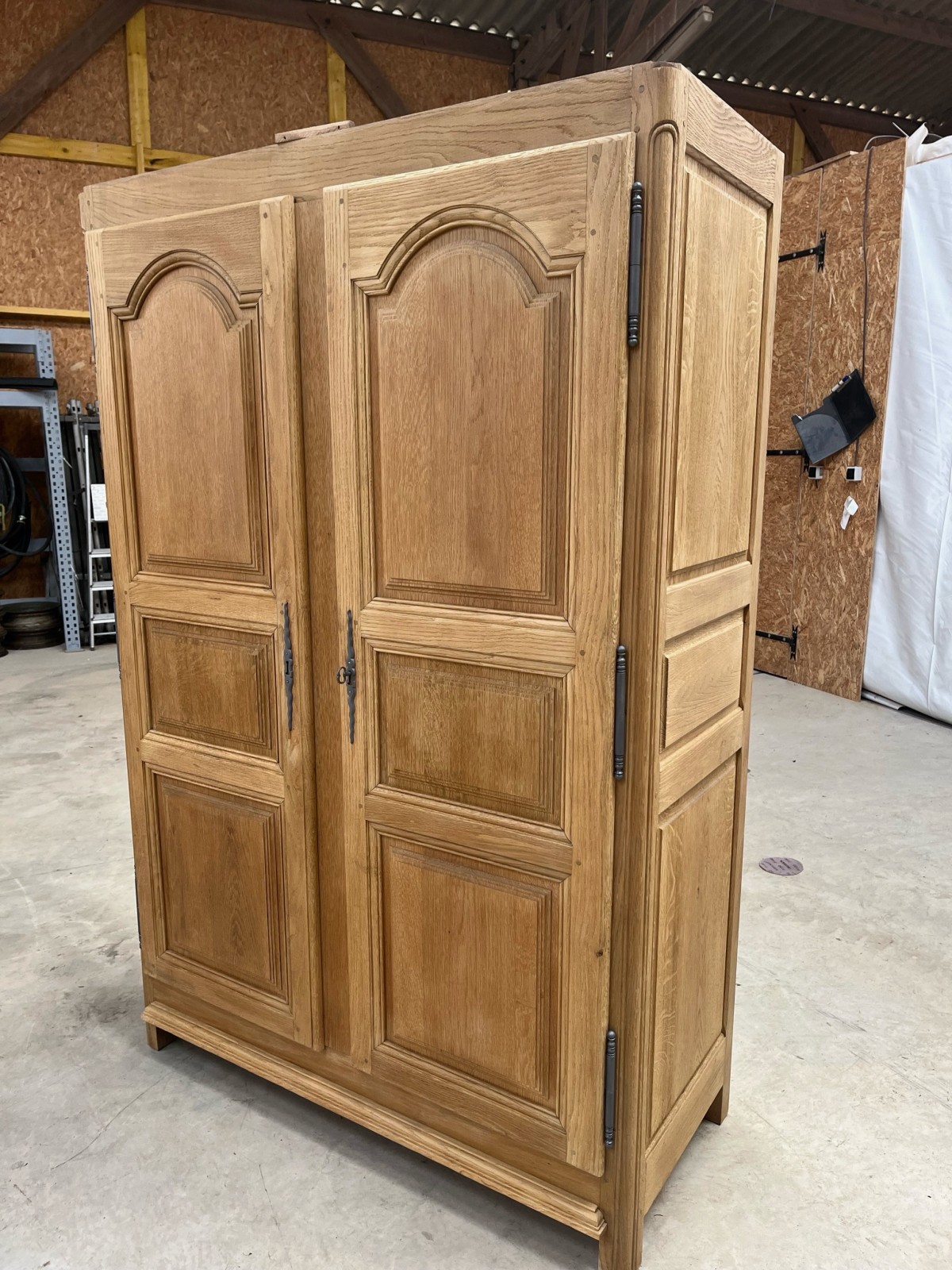 Nous avons récemment rénové une armoire ancienne sculptée d’un client d’Elbeuf : après aérogommage, les reliefs du bois ont retrouvé tout leur éclat, prêts pour une finition à la cire naturelle, ici un vernis incolore mat a été appliqué.
